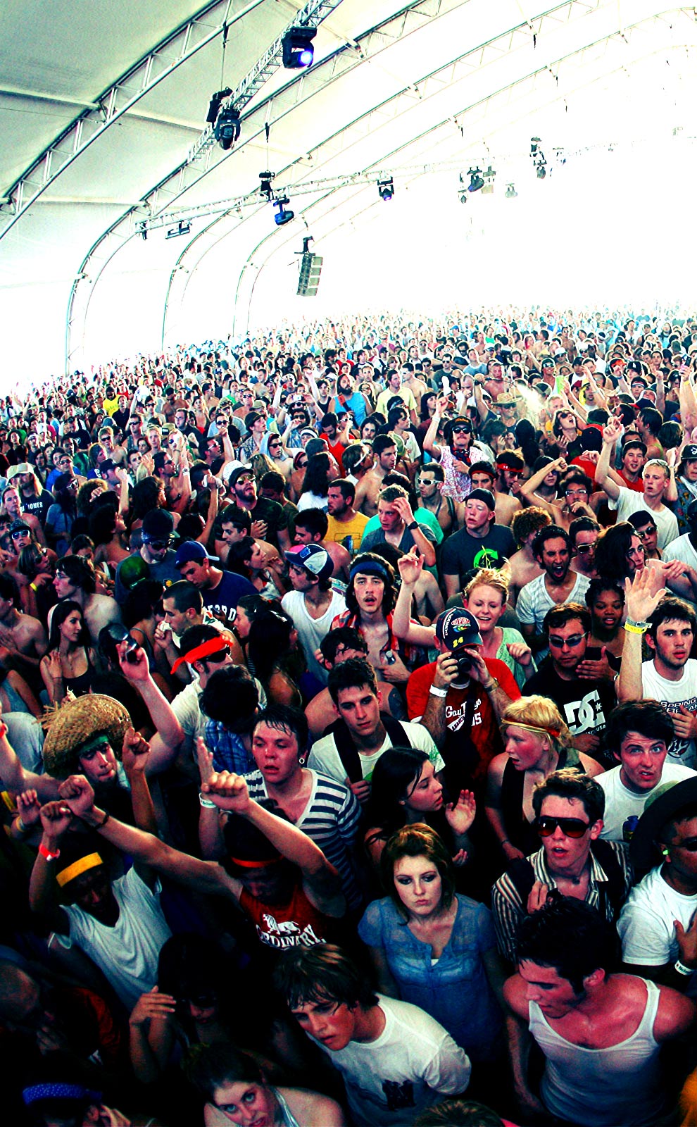 Les festivals, c’est le relevé des comptes de l’industrie. Une affiche se monte à coup de billets. On paye, on pointe, on se baffre, on enchaîne les groupes. C’est le côté fast-food du rock. Fast-rock : on bouffe un peu de Strokes, un bout d’Arcade Fire, une aile de Massive Attack, on arrose de Soulwax et on fait passer avec des rasades de Queens of the Stone Age… Dans un festival, la musique est un prétexte. C’est la colonne vertébrale, mais ce qu’on en retient à l’arrivée, c’est aussi comment était la bière, qui on a rencontré, où on a dérapé et comment on a fini. Niveau musique, un festival fait plus business parce que cette sortie rejoint celle que font les familles à Disneyland. Il y a un prix d’entrée, et il faut mettre sa main à sa poche pour toutes les animations annexes.