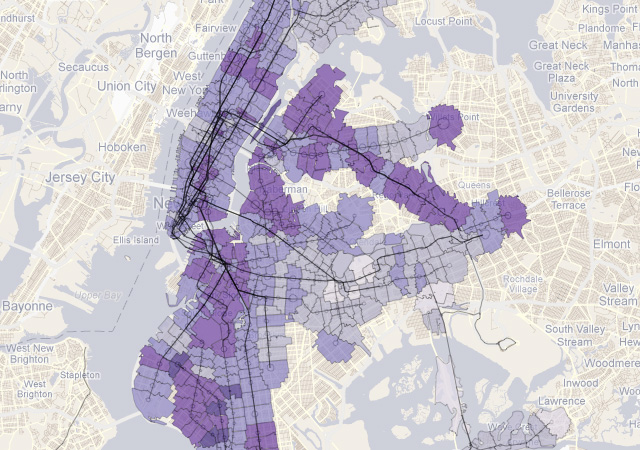 90 ans plus tard, outre-Atlantique. Le Wall Street Jounal a construit une impressionnante web-application autour des habitudes des usagers du métro new-yorkais. Card Usage analyse les données collectées à partir des cartes d’abonnements. Quartier par quartier vous pouvez visualiser quels types d’abonnements les usagers utilisent le plus et comment ces répartitions ont évoluées depuis l’augmentation des tarifs en décembre 2010. Allô, la RATP ? Tu nous prêtes tes données ?